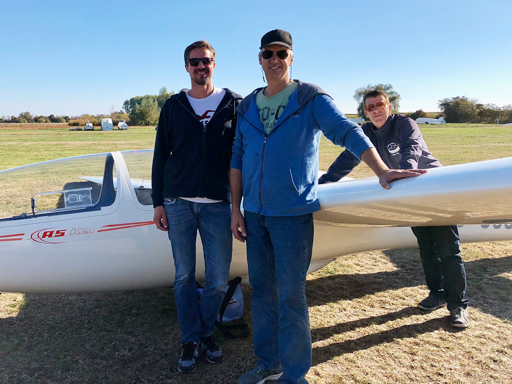 Am vergangenen Sonntag ist Andreas Grimm (li., rechts neben ihm Prüfer Herbert Wersching aus Worms und CFI Peter Mangold) mit Bestehen der Prüfung zur Segelfluglizenz…