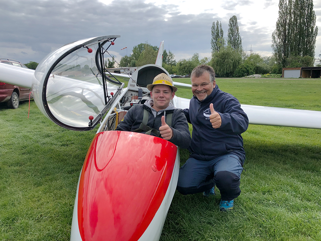 Am vergangenen Sonntag war es nun für Yannick Strickler (li., mit Fluglehrer Bernd Schwehm) soweit. Der Fünfzehnjährige, der seine Ausbildung…